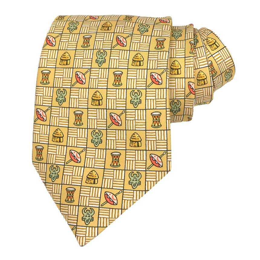 - ゆうパケット発送 送料無料 HERMES エルメス ネクタイ シルク100% フランス製 古代文明 ベージュ系 メンズ 服飾小物 aq6778