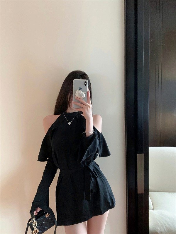 > ミニワンピース ショート丈ワンピース オフショルダー 肩見せ フリル パーティー キャバクラ ドレス シンプル レディース M ブラック