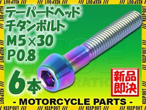 > メール便OK!M5×30 P0.8 チタンボルト 6本セット 5mm 30mm ピッチ0.8 焼き色 テーパー ボルト バイク スクリーン カウル 車 自転車 ステム