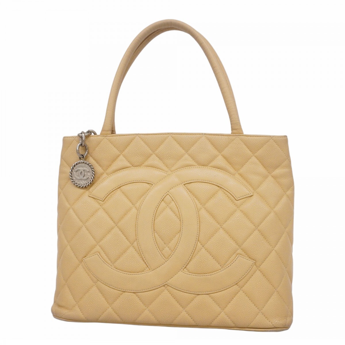 - 【5ob0478-h】シャネル トートバッグ 復刻トート キャビアスキン ベージュ シルバー金具【中古】レディース