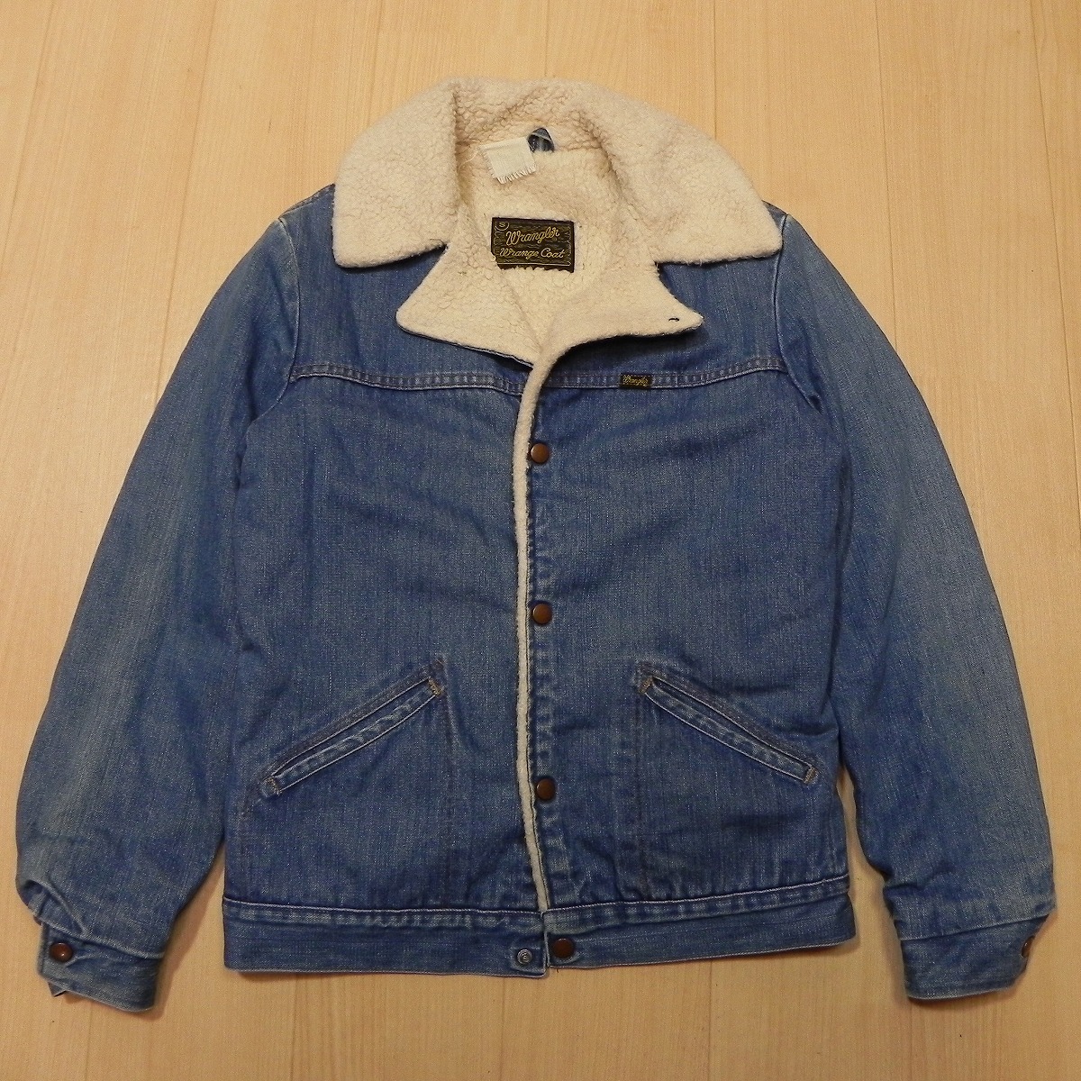 > ★ 70s 80s USA製 Wrangler ボア デニムジャケット S インディゴ ランチ 裏ボア 黒タグ ジージャン ラングラー ヴィンテージ 古着 ★h