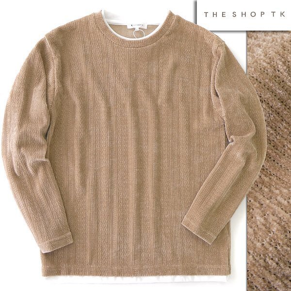 - 新品 タケオキクチ シェニール ケーブル Fレイヤード プルオーバー L ベージュ 【I42179】 THE SHOP TK メンズ クルーネック Tシャツ