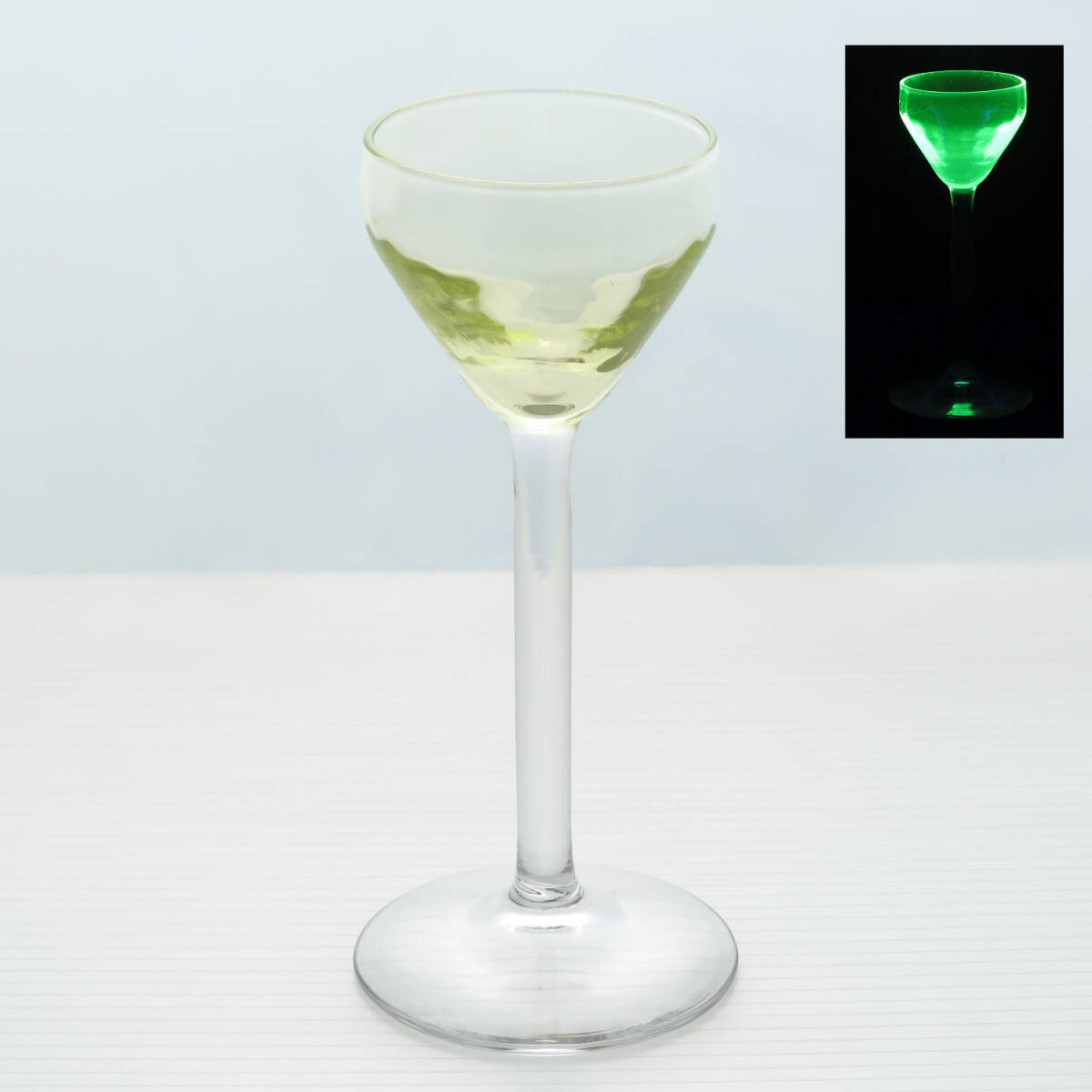 > ウランガラスの脚付きの小さなリキュールグラス/カクテルグラス/ガラス食器/酒器/ヴァセリンガラス/ディスプレイ/インテリア雑貨/AL-0649