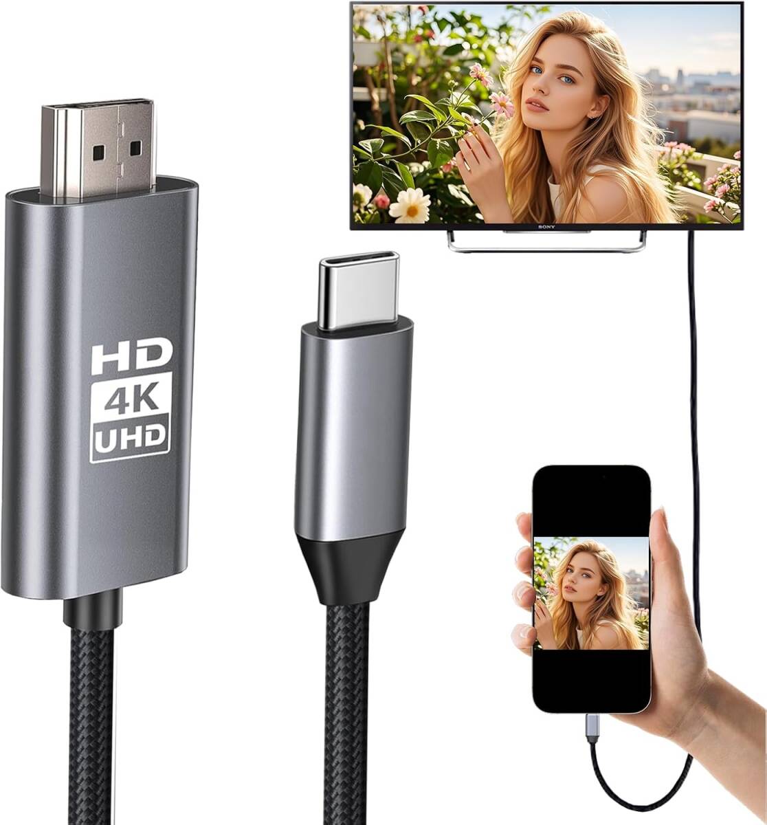 > USB Type-C to HDMI 変換ケーブル 1.8M 4K対応 高速伝送 ミラーリング AV接続ケーブル