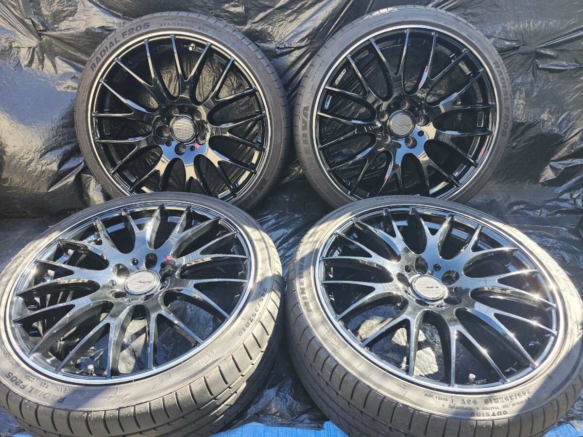 > バリ山 RAYS HOMURA 2×9 19インチ グロッシーブラック 8J 114.3-5H +38 MINERVA 225/35-19 245/35-19 マークX カムリ IS クラウン