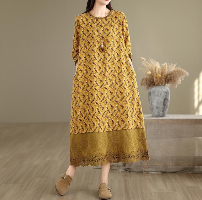 - 新入荷上質 ワンピース 綿混 洋服ミックス アンティーク風 ロマンファッション ゆったり フリーサイズ 長袖 花柄
