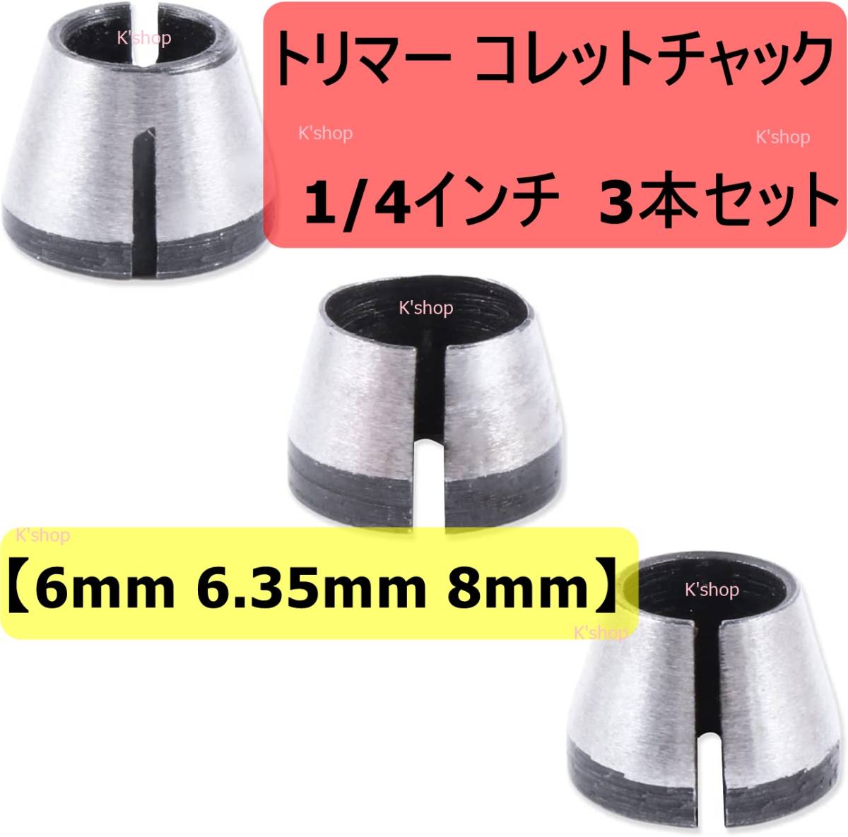 - トリマー コレットチャック 1/4インチ 6mm 6.35mm 8mm 電動工具 DIY 工具 トリマーアクセサリ 3本セット トリマーコレットチャック
