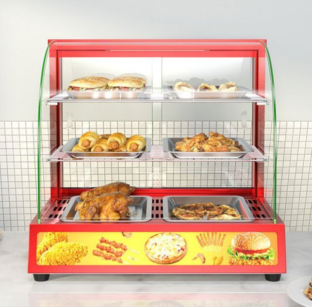 - 業務用赤色弧三層加熱保温棚食品保温展示棚惣菜展示保温棚110V