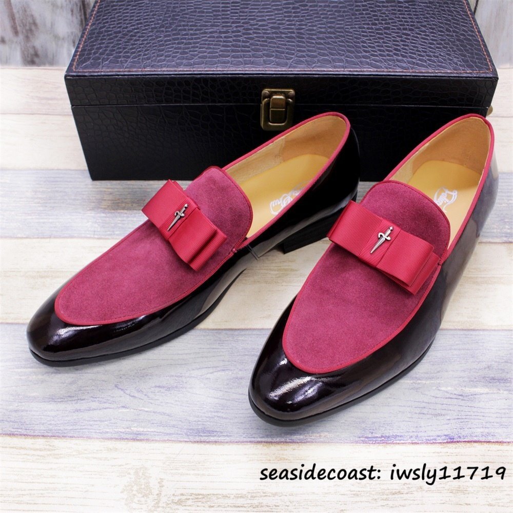 - 最高級★ビジネスシューズ メンズ ローファー スリッポン本革 レザーシューズ 職人手作り ドレスシューズ紳士靴 牛革 革靴 レッド 26.0cm