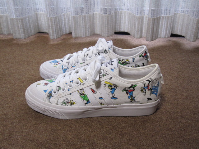 - 未使用 adidas アディダス × ディズニー グーフィ総柄 Nizza スニーカー ホワイト×柄 US8.5/26.5cm