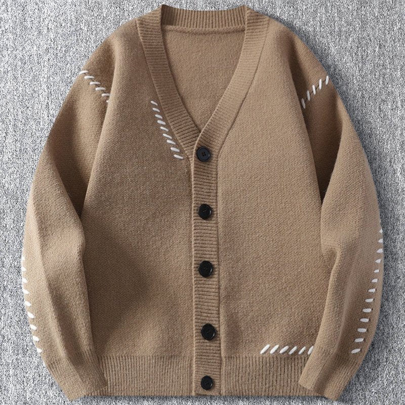 - 新品DCKMANY ウール混 ニット カーディガン リブ編み ニット ジャケット 秋冬 厚手 メンズ セーター カジュアル アウター カーキ T5200-XL
