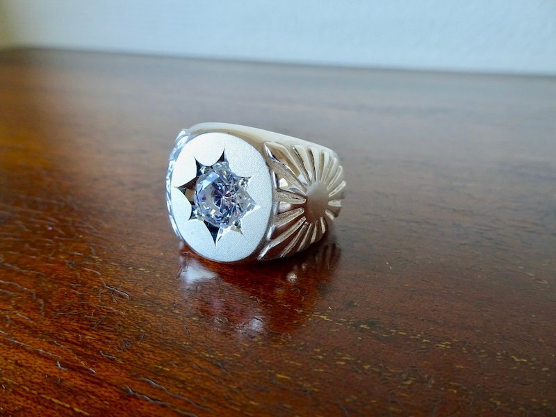 - 仁尾彫金『一つ星ジルコニア太陽の楕円印台リング』ハンドメイド175