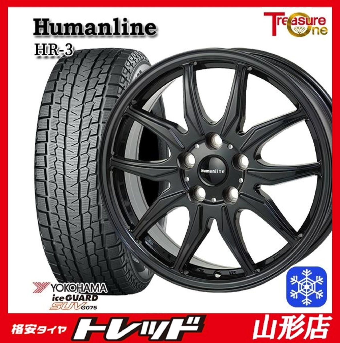 > 山形店 新品 冬タイヤホイールセット Humanline HR-3 18インチ 7.0j 5H114.3 +40 BK ヨコハマ アイスガードSUV G075 225/60R18 2025年製