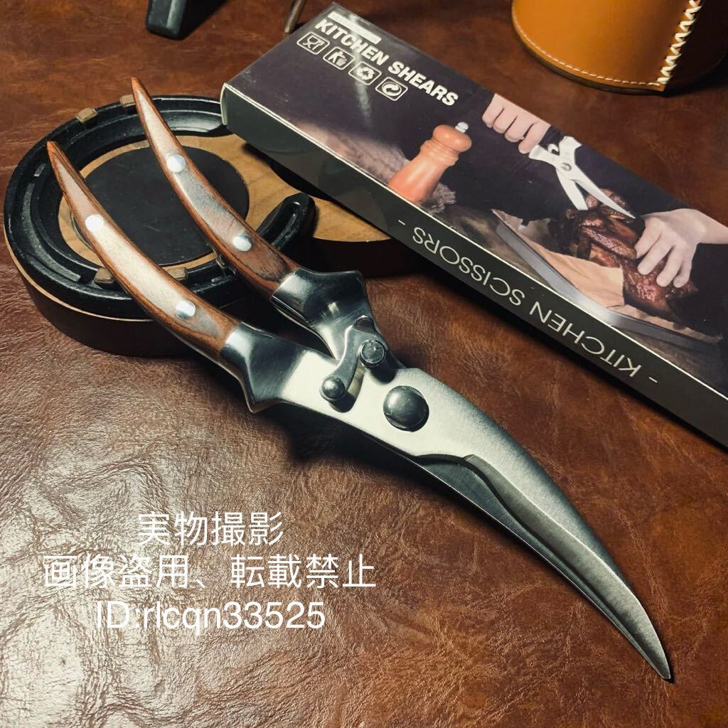 - アウトドア 多機能 強力はさみ ステンレス鋼 料理 釣り開く力が不要 キャンプ 野外登山 長さ25cm 248g 錆びにくい 木製取っ手