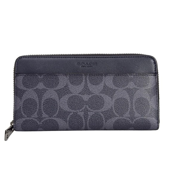 > コーチ COACH 長財布 F58112 シグネチャー柄 レザー ダークネイビー×グレー 美品 財布