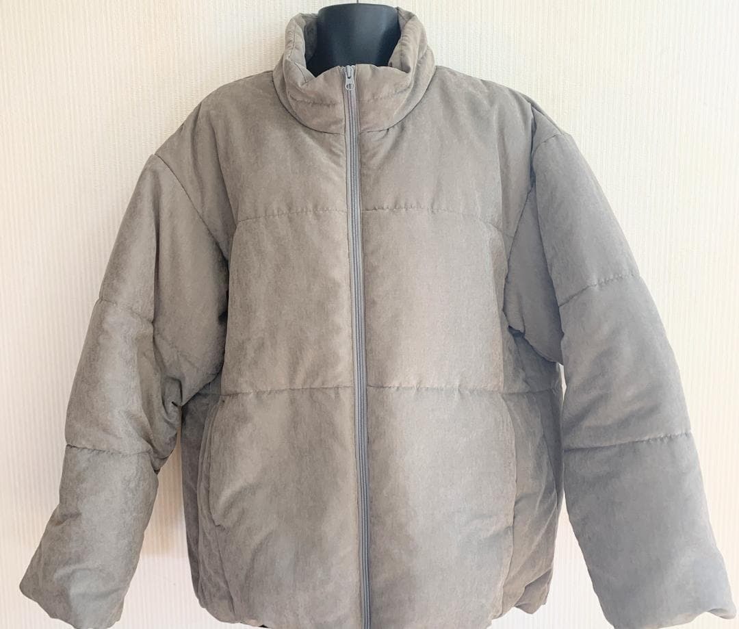 - 1回着用 グレー スエード風 ダウンジャケット XL 中綿 ワールド製 メンズ
