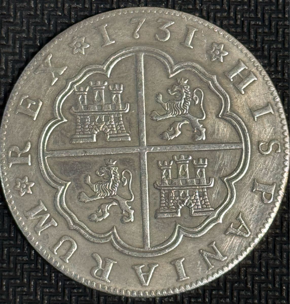 - 古銭 硬貨 コイン 銀貨 国章 スペイン帝国 フェリペ五世 外国古銭 獅子紋