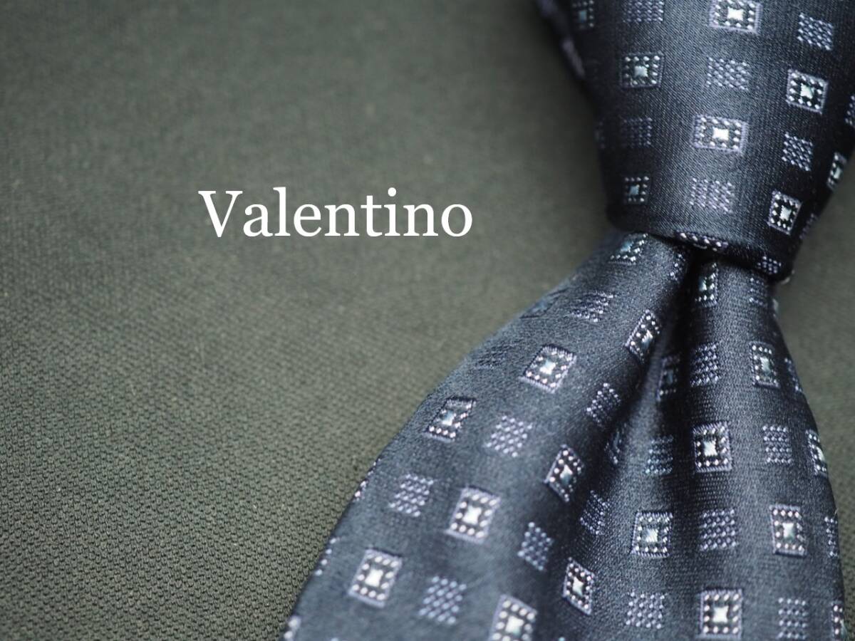 - 美品【VALENTINO ヴァレンティノ】 G1131 ネイビー SILK ブランド ネクタイ 古着 良品 転売 仕入