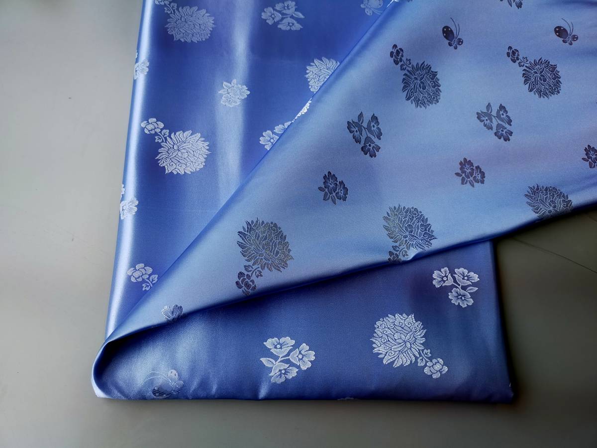 - 韓国布(チマチョゴリ)ハギレ タン 水色 花と蝶 まとめて決済可