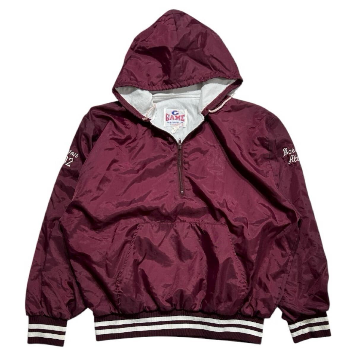 > 2002年製 ヴィンテージ USA製 ■ GAME Sportswear ゲームスポーツウェア ■ ロゴ 刺繍 ナイロン スタジアム アノラック パーカ L