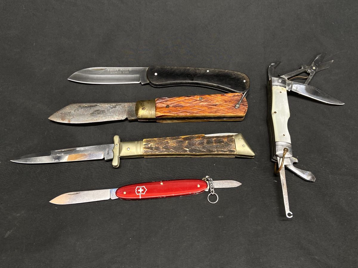 > 【R892】折りたたみナイフ 4本 まとめ売り 山蔵/ビクトリノックスなど アウトドア 狩猟 キャンプ 山登りなどに 中古 ヴィンテージ b