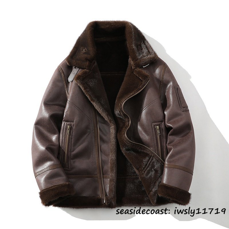 - 定価16万◆フライトジャケット メンズ もこもこ 極防寒 厚手 レザージャケット ファーコート 毛皮 ムートンコート ライダース ブルゾン 4XL