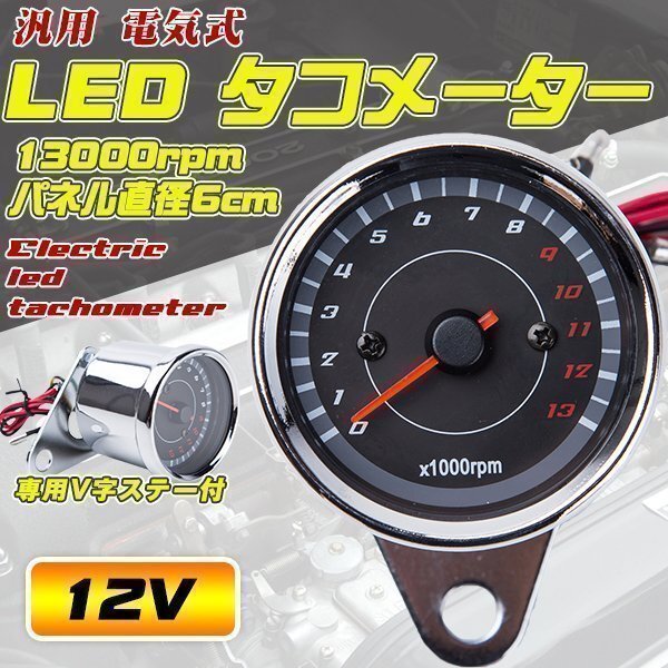 - 汎用 LED タコメーター 電気式 13000 12 V モンキー カスタム バイク カスタム ステンレス ドレスアップ バイク用品 メッキ