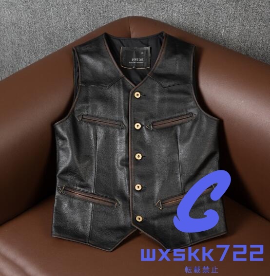 - 牛革 ハイソンハイド レザーベスト バイクベスト カウハイド 牛革 機関車 メンズファッション 革ジャン 本革 シングルベスト S~4XL