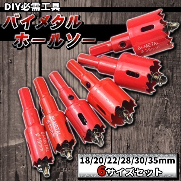 > バイメタルホールソー ホルソー セット 工具 穴あけ 18 20 22 28 30 35mmセット ドリル 穴あけ ビット ステンレス 金属 用 木工
