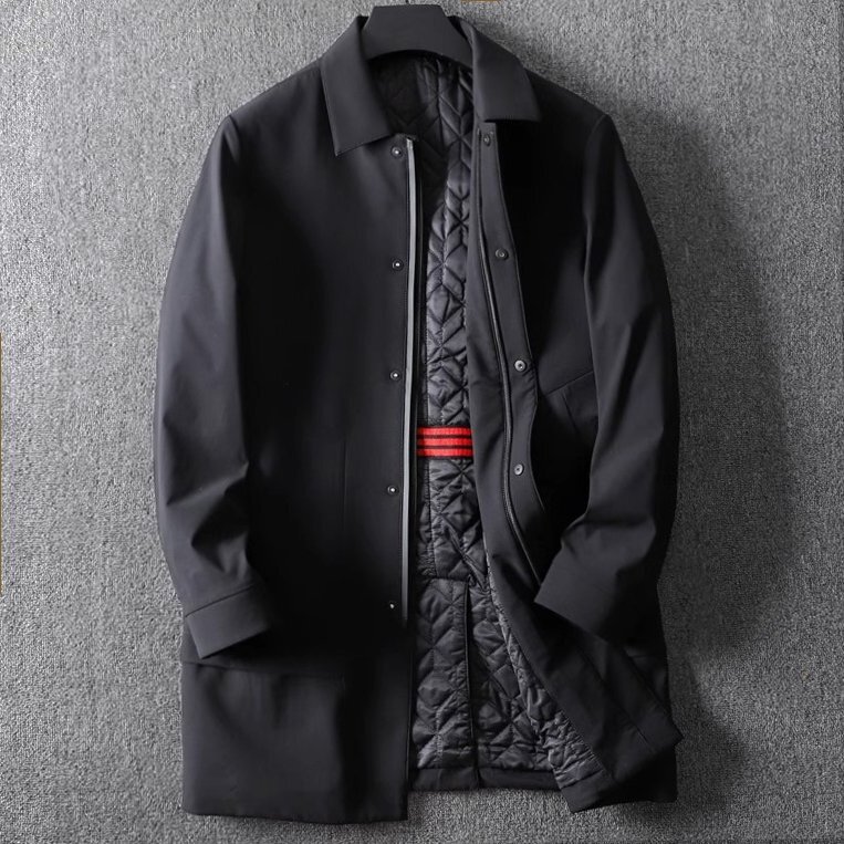 - 新品 国内未販売 キルティングコート メンズ 紳士 ミディアム丈 トレンチコート 防寒 秋冬 中綿ジャケット ファスナーポケット 黒 T8010-L
