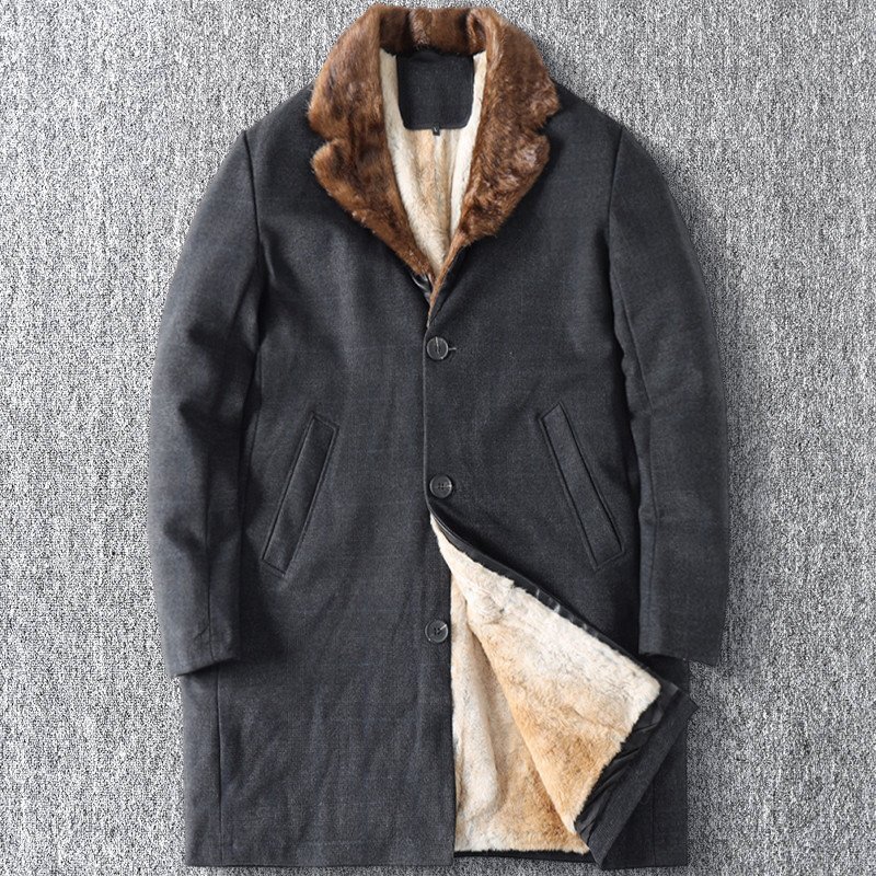 - 新品 DCKMANY ウール混 コート ミドル丈 フェイクミンクファー チェック柄 厚手 防寒 紳士 ビジネス トレンチコート メンズ 濃灰 T8155-3XL
