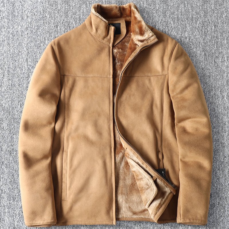 - 新品 北米高級 フェイクレザー ボアジャケット スエード スタンドカラー 秋冬 防寒 厚手 デザイン メンズ 保温 ブルゾン カーキ T8110-XL