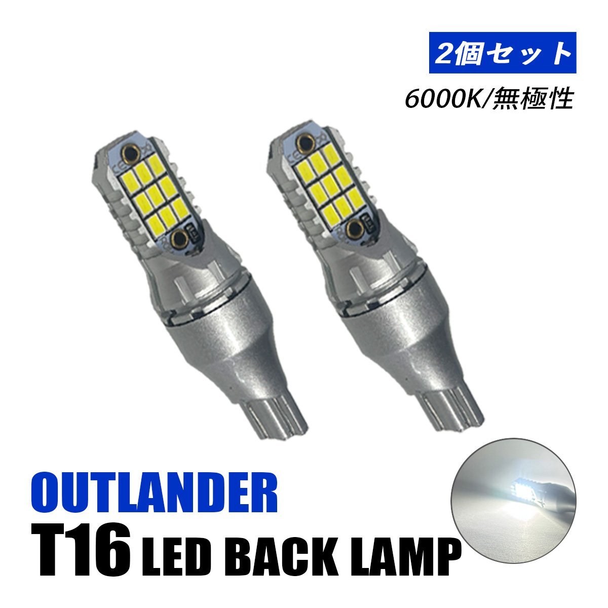 - アウトランダー バックランプ T10 T16 LED バルブ 12V ホワイト 汎用 純正交換 車検対応 18LED 両面発光 6000K 左右セット