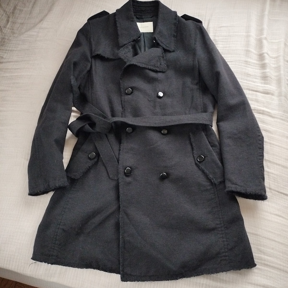 - nano univers ナノユニバース ウール リネン ブラックハーフコート センターベンツ ウエストベルト サイズM