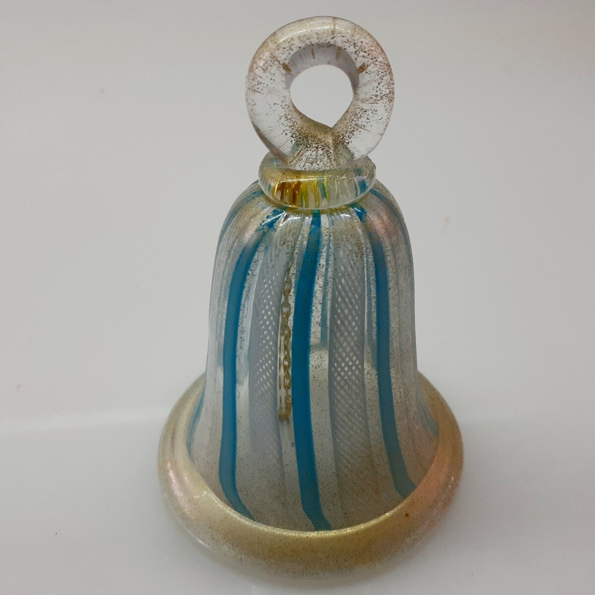 - 【MURANO】ITALY★ムラノ 金彩水色リボン レース ハンドベル ディナーベル テーブルベル★ヴェネチアン グラス ムラーノ ベネチアン ガラス