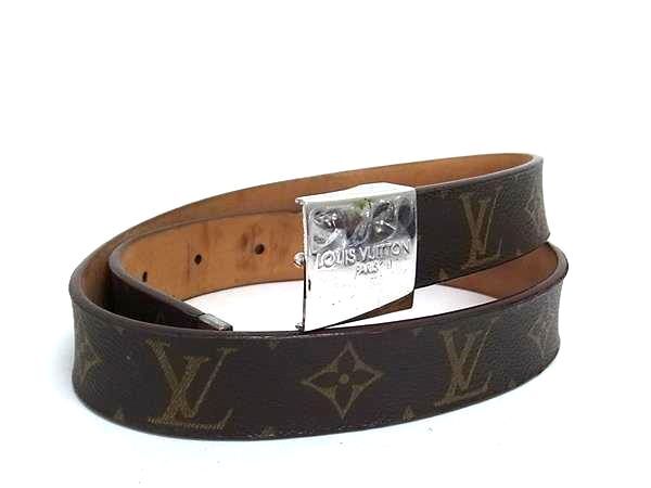- 1円 LOUIS VUITTON ルイヴィトン M6801 モノグラム シルバー金具 ベルト 表記サイズ ブラウン系 FU4721