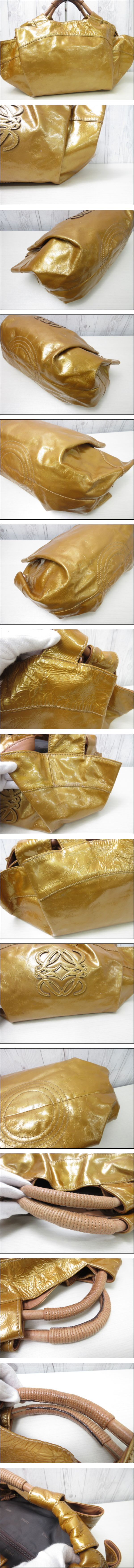 > 極美品 LOEWE ロエベ アナグラム ナッパアイレ ハンドバッグ トートバッグ バッグ パテントレザー×レザー ゴールド系 91659