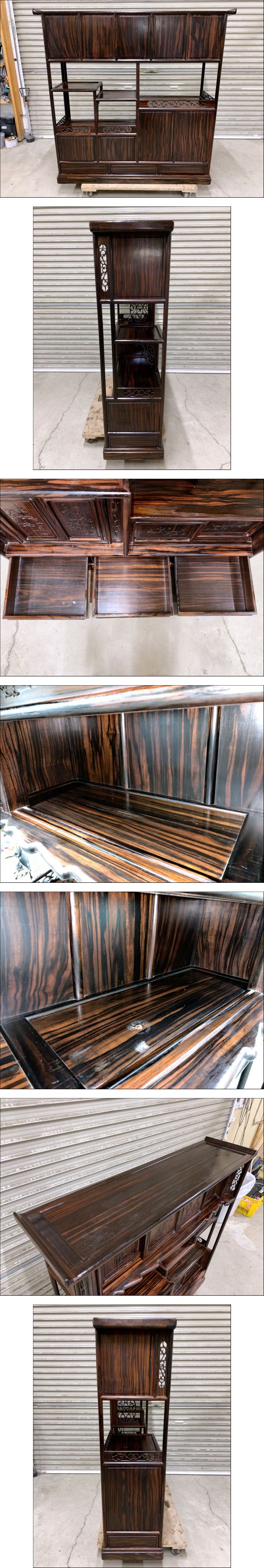 > 中古 茶箪笥 幅1290×奥行370×高さ1300mm 透かし彫り 飾り棚 茶棚 和箪笥 アンティーク レトロ インテリア 引取歓迎 茨城県 1104こ1 M 家D