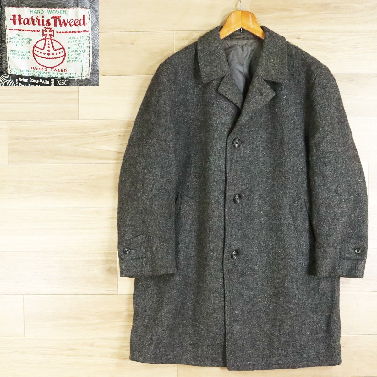 - H1T/O4.18-2 70s~ ビンテージ Harris Tweed ハリスツイード ウールコート チェスターコート ツィードコート ヴィンテージ