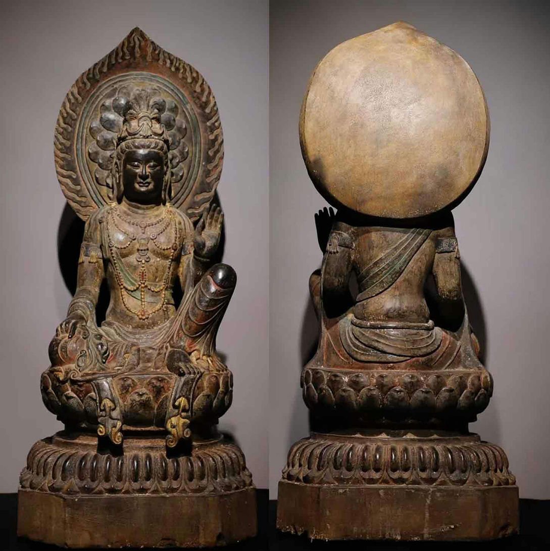 - ■観心・時代旧蔵■A8626唐時代 青石彩絵観音 青石細工彫刻★仏教古美術★仏像★細密細工★廃寺旧蔵★廃寺買出品