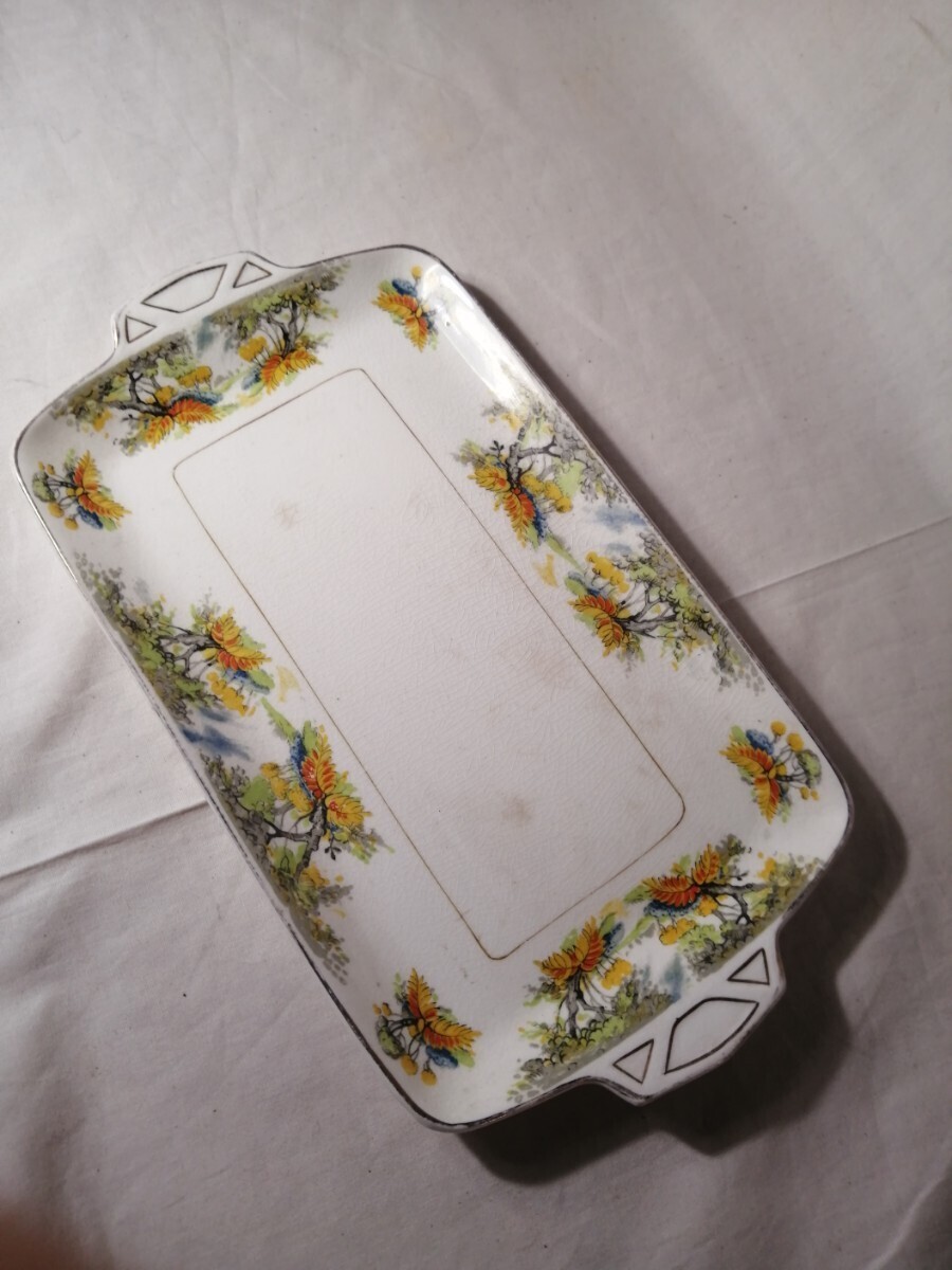 > ミモザのサンドイッチプレート 1930年代 イギリス JONE MADOKE&SON 洋食器 角皿 ケーキ 手付きプレート ミモザ 80SR30j1