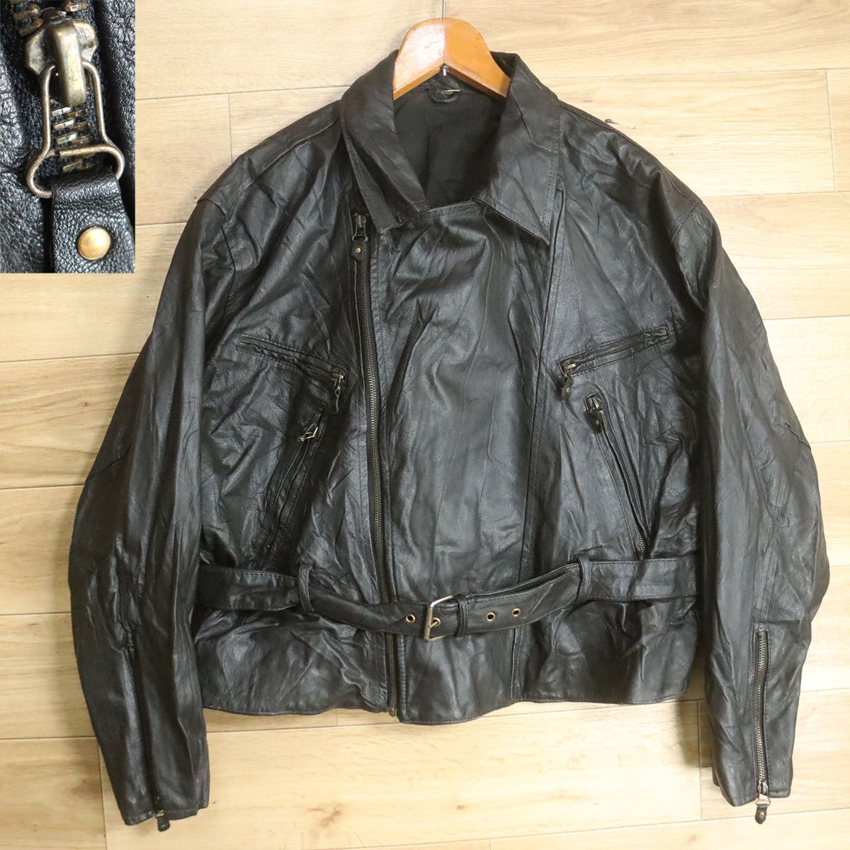 > *7K/S6.12-3 レザーモーターサイクルジャケット ダブルライダースジャケット 本革 レザージャケット 革ジャン ブラック XL