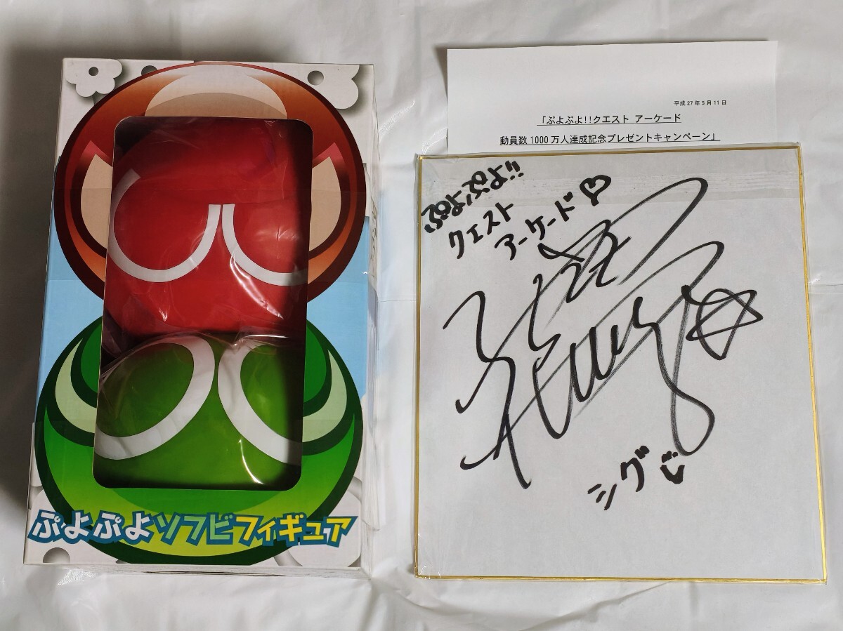 - ぷよぷよ!!クエスト アーケード 記念プレゼント 非売品 渕崎ゆり子 サイン色紙 ぷよぷよ ソフビフィギュア セット 超希少!
