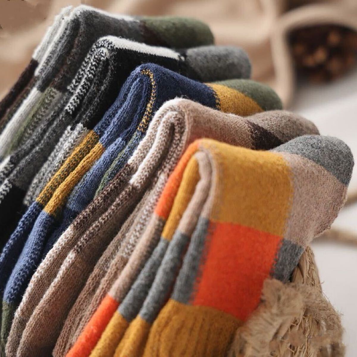 - 北歐風柄 紳士靴下ビジネス 極厚メンズソックス 5足セットウール混 スニーカークルー丈 暖かい厚手冬裏パイル男性靴下 まとめ売り