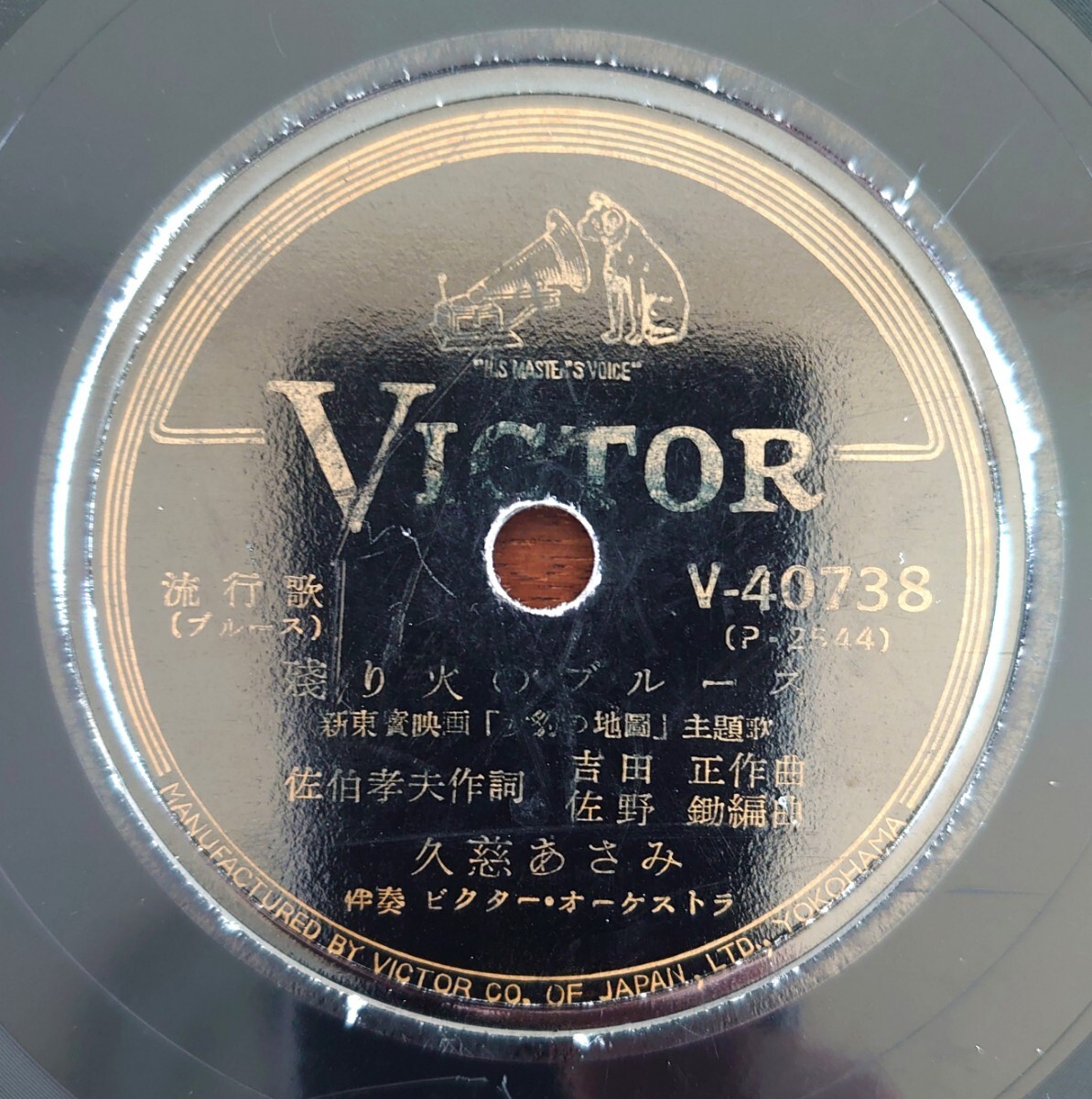 - 【SP盤レコード/縁微剥】VICTOR V-40738 流行歌/新東寶映画「女豹の地圖」主題歌/殘り火のブルース-残り火のブルース/同題/久慈あさみ
