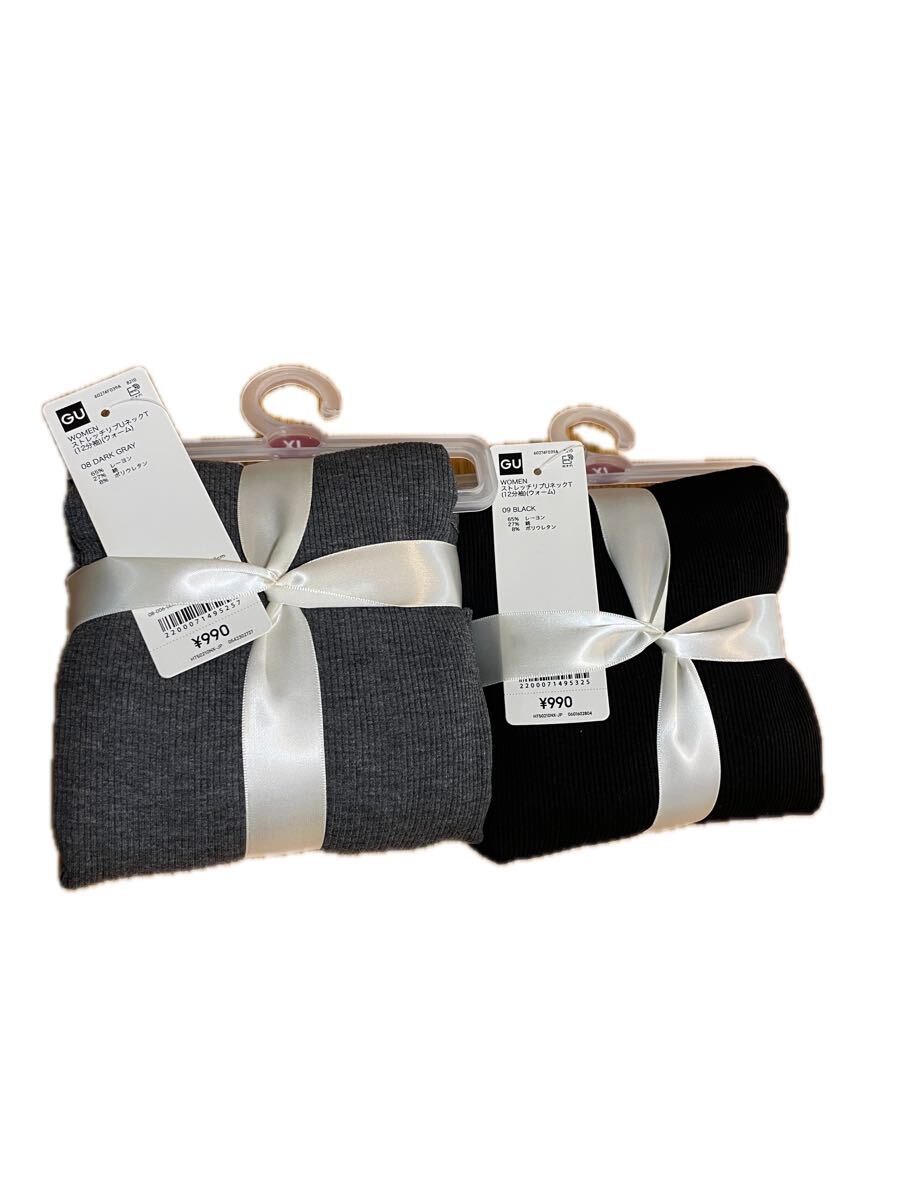 > GU WOMENストレッチリブルネックT(12分袖)(ウォーム)ブラック& グレーXL 未使用×2