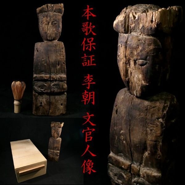 ギャラリー恵 骨董部門 オークションID【megtora11】 当オークションストアをご覧頂き誠にありがとうございます。 当店「ギャラリー恵」は皆さまに楽しんで頂けるストアを目指し、 陶磁器全般・蒔絵・漆芸品・西洋アンティーク・ 仏教美術・刀装具などなど高額の物から安価の物まで 幅広いジャンルの商品を出品して参ります! 皆様にいつも新入荷の商品をご紹介出来るよう 毎週必ず新入荷の商品を出品していきますので 当オークションストアを「お気に入り」に登録して頂けたら 幸いでございます。 皆様との良き御縁を心よりお待ちしております。 ギャラリー恵 刀剣部門「 k_selection7」では 刀装具・刀剣類に特化したストアでございます。 毎週欠かさず数十点の商品を出品しておりますので ご興味のある方、是非下記のリンクよりご来店下さいませ。 ギャラリー恵 刀剣部門(オークションID:k_selection7) 商品説明 ~寸法~ 全高・・・約 40.5cm 本歌保証の李朝の木彫品です。 恐らく文官の像と思われますが 神官や武官かもしれません。 画像にてご確認下さい。 経年を経た木肌が時代を経たからこそ滲み出る味を出しております。 この機会に是非手に入れて下さい。 保管箱がございます。 大切にして頂ける方の元へ届けば幸いでございます。 ~状態~ 状態は画像の通りとなります。 状態等含めて画像にてご確認下さい。 許容範囲内の時代傷みはご理解下さい。 自立し難い為、撮影の際は下に薄い板を敷くなどして 調整し撮影しております。 備考 - 注意事項 下記の注意事項を必ずご確認いただき 当オークションのルールを理解していただいた上で 入札にご参加戴きますようよろしくお願いします。 ご落札後の取引の流れ 1.基本的に落札時より24時間以内に お取引情報の入力をお願いします。 2.ご入金は落札より3日(72時間)以内にお願いします。 ※ご連絡なく上記の期日を過ぎた場合 「落札者都合による削除」を行う可能性があります。 予めご了解ください。 3.同日に当店で落札された商品につきましては、同梱が可能です。 (サイズによっては同梱できない場合がございますのでご了承下さい。) 落札されたYahoo! JAPAN IDをご連絡ください。 銘・時代等の記載について 時代・銘・材質等の記載につきましては 当方が「保証」と記載している物以外に関しましては 画像にてご判断頂き、納得できる範囲内にてのご入札をお願いします。 オークション(入札者)の取り消しについて ご新規、並びに評価に不安のある方の入札につきましては 当方の判断により入札の取り消しをさせていただく場合がございます。 ご新規の方につきましては入札前に質問欄より購入の意思がある旨をご連絡下さい。 状態等について 商品画像はできる限り実物の色味に近づけておりますが、 ご利用のパソコン、モニターによって異なって見える場合があります。 説明欄の画像がお使いのブラウザによっては 表示されない場合がございます。 その場合は別のブラウザをお試しください。 気になる点が御座いましたら、お気軽にご質問ください。