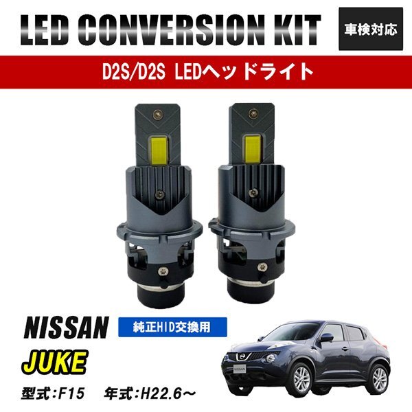 - ジューク F15 LEDヘッドライト ロービーム D2S D2R D2C 純正交換 バルブ LED ホワイト 視界良好 事故防止