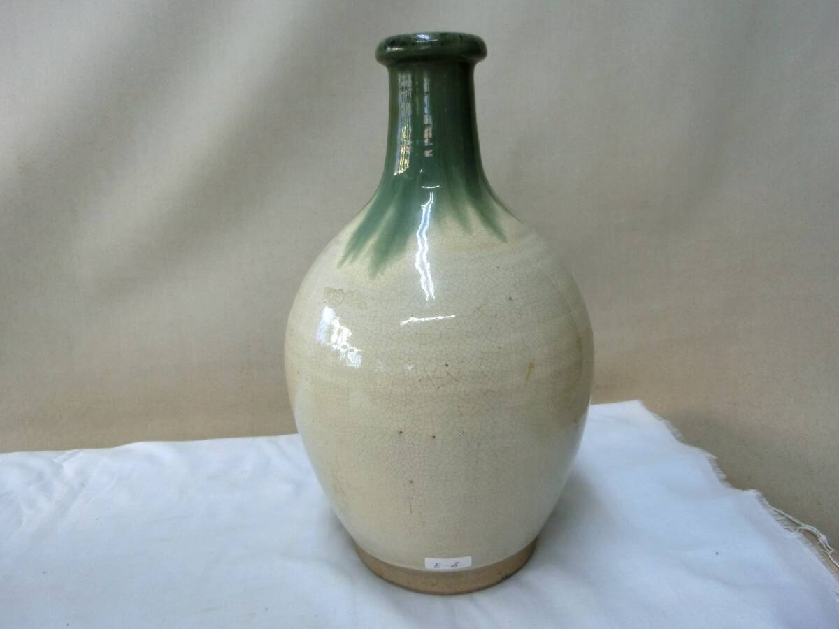 - 【徳利 首部に緑釉 やや大きめ 酒器 骨董 ・EZ・鑑賞】◆鉢 陶磁器 インテリア 花器 昭和レトロ 壷 コレクション