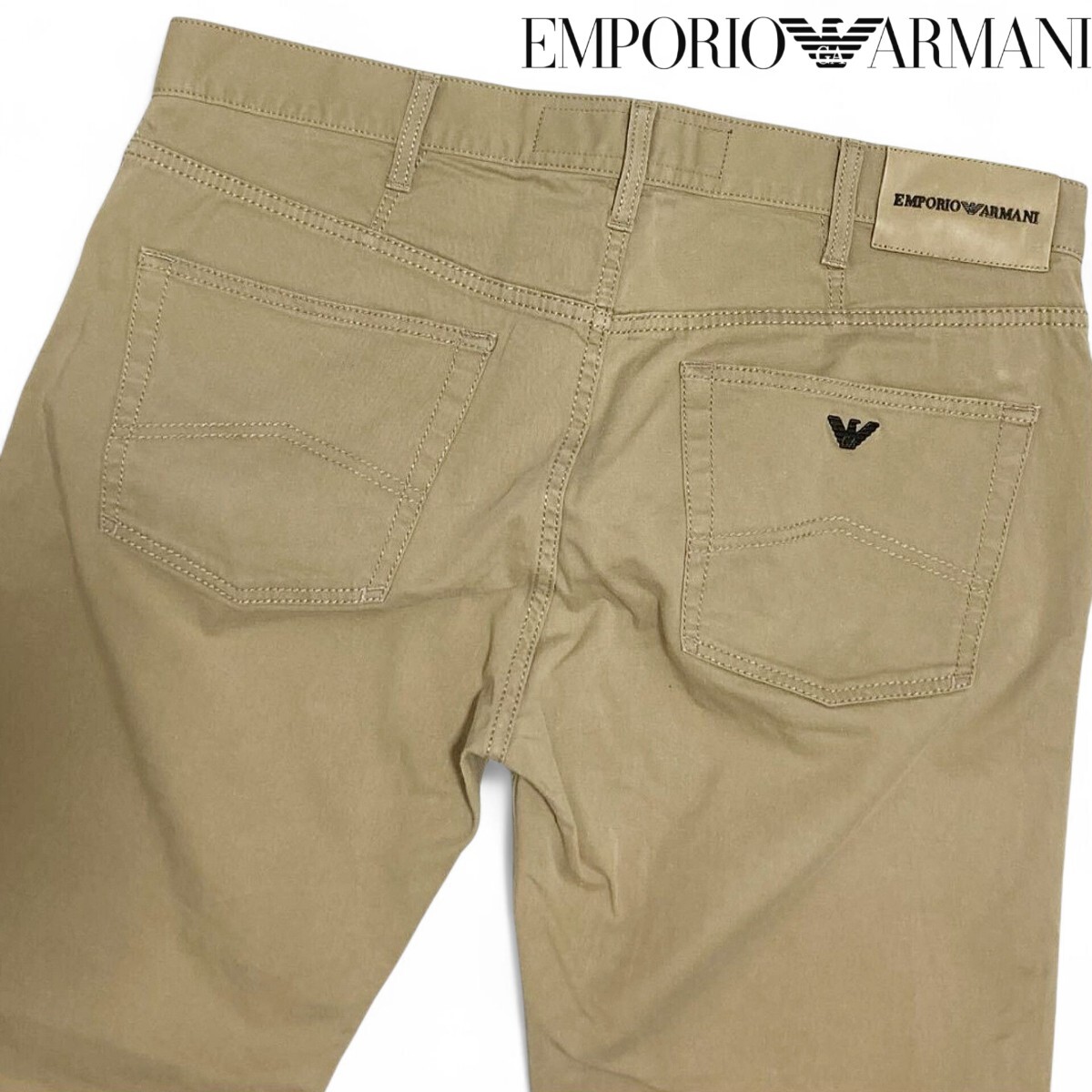 - 美品●XXL相当 エンポリオアルマーニ メンズ チノパン イーグルロゴ レザーパッチ ストレッチ EMPORIO ARMANI カラーパンツ ベージュ W38